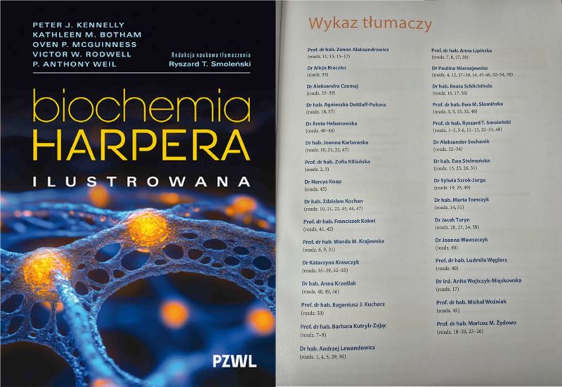 Nowe wydanie „Biochemii Harpera” Z radością informujemy o ukazaniu się najnowszego polskiego wydania podręcznika „Biochemia Harpera”. Jest nam niezmiernie miło ogłosić, że dr Aleksandra Czumaj miała zaszczyt współtworzyć tę publikację, przygotowując tłumaczenie wybranych rozdziałów. Składamy podziękowania prof. dr. hab. Ryszardowi T. Smoleńskiemu za zaufanie oraz koordynację całego przedsięwzięcia. Udział w pracach nad tak prestiżowym, kultowym wręcz podręcznikiem to dla nas ogromne wyróżnienie i potwierdzenie wysokiej jakości dydaktyki prowadzonej przez nasz zespół |